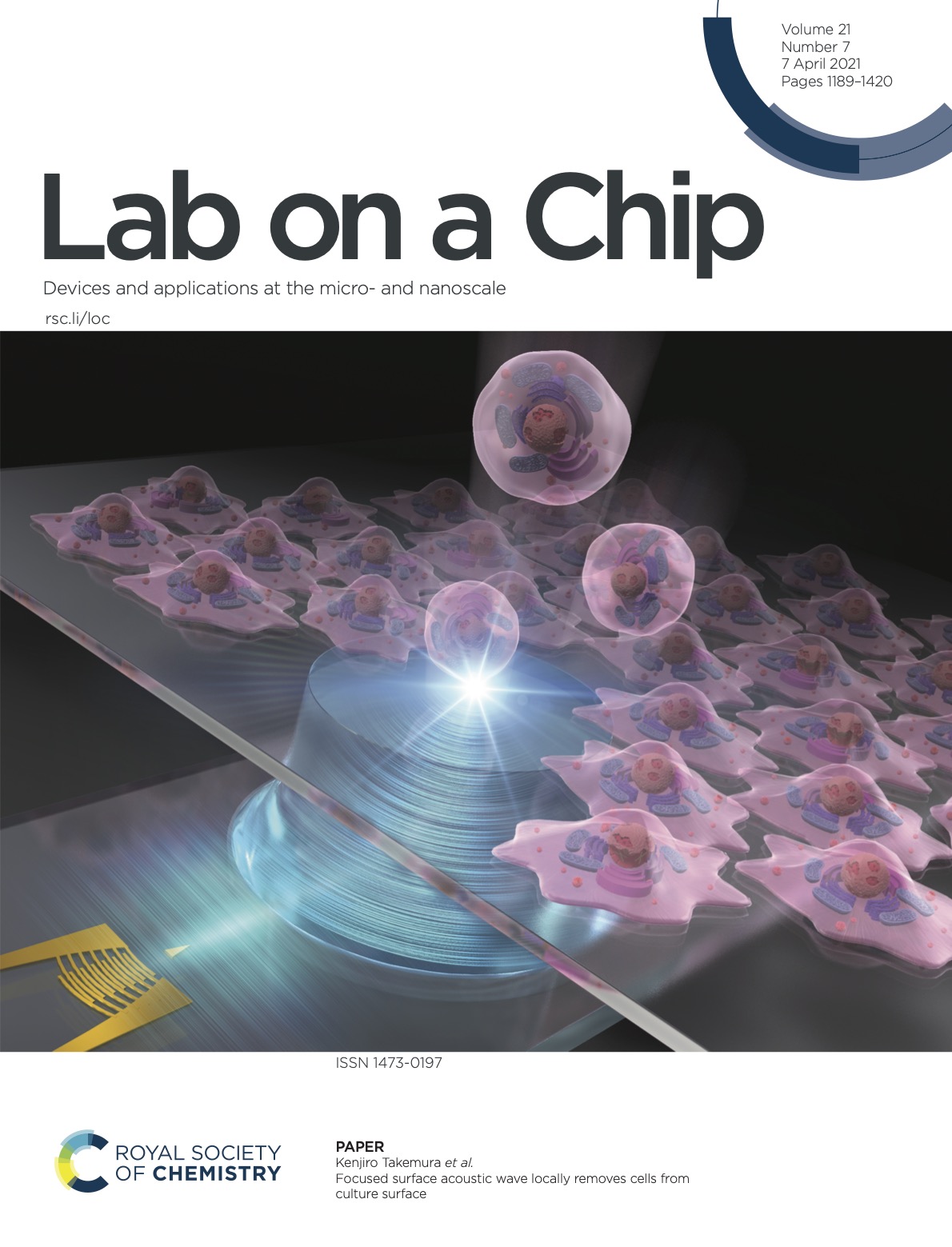 学術論文・カバー選出(竹村教授) 竹村教授とカリフォルニア大学サンディエゴ校(UCSD)の国際共同研究の結果がLab on a Chipに採択され,その表紙を飾りました. https://doi.org/10.1039/D0LC01293A